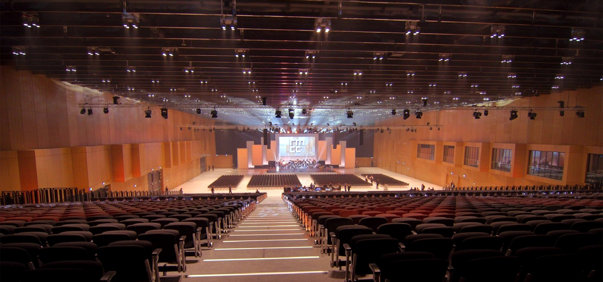 Mit Halle 1 entstand im Neubau des RMCC ein multifunktionaler Raum, der Messe- und Veranstaltungsbetrieb intelligent vereint. theapro konzipierte die Technik für maximale Flexibilität – von Kongress über Konzert bis Großveranstaltung mit bis zu 5.000 Personen.