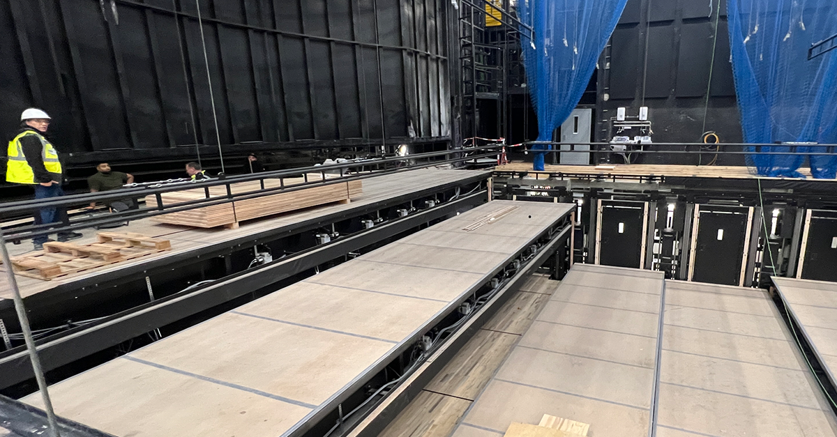 Ein weitere wichtiger Meilenstein ist erreicht: Der neue Bühnenboden im Kleinen Haus im Staatstheater Darmstadt ist fertiggestellt. Über 1000 qm Bühnenboden wurden auf der Haupt- und Seitenbühne sowie im Orchestergraben verlegt.