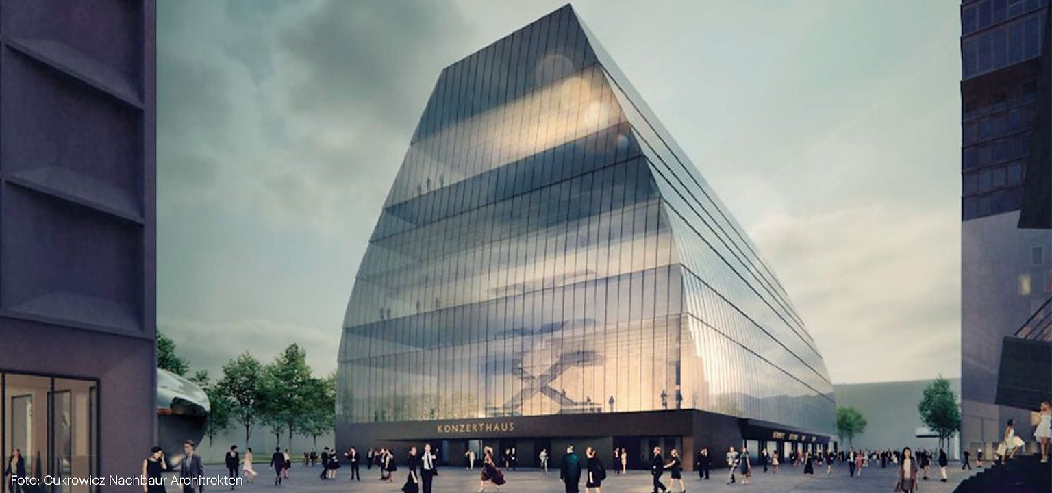 Der künftige Konzertbau soll international Maßstäbe setzen und zwei Säle, Räume für die Hochschule für Musik und Theater sowie weitere Nutzungen vereinen.